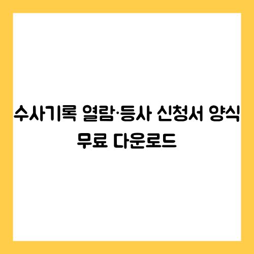 아래 버튼을 클릭하면, 수사기록 열람·등사 신청서 양식을 Word 파일 형태로 바로 다운로드할 수 있습니다. 작성 후 수사기관에 제출하면 공식적으로 수사기록 공개를 요청할 수 있습니다.