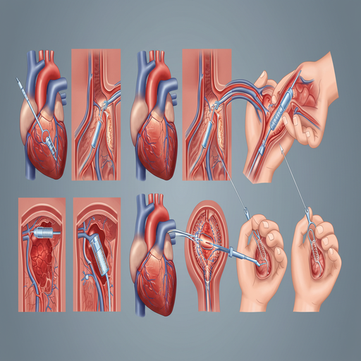 카테터 삽입: 시술자는 대개 환자의 팔꿈치나 서혜부(사타구니 부위)에서 혈관에 카테터를 삽입합니다. 카테터는 혈관을 따라 심장까지 이동합니다.